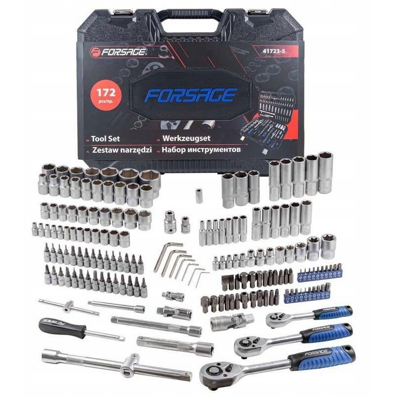 Das 172-teilige Forsage-Werkzeugset bietet dank drei Antriebsgrößen vielfältige Anwendungsmöglichkeiten. Dieses vielseitige Werkzeug bewährt sich in den unterschiedlichsten Situationen, sowohl bei Reparaturen zu Hause als auch in professionellen Werkstätten.