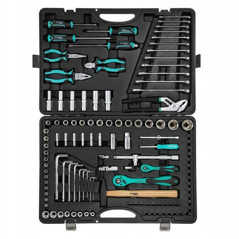 Der MAMEDFORCE-Werkzeugsatz besteht aus 122 Teilen und ist die perfekte Lösung für alle, die vielseitige Werkzeuge für Reparaturen und Wartungsarbeiten suchen. Dank der verschiedenen Größen – 1/4 Zoll und 1/2 Zoll – eignet sich dieser Satz für viele Situationen, sowohl in Werkstätten als auch in privaten Garagen.