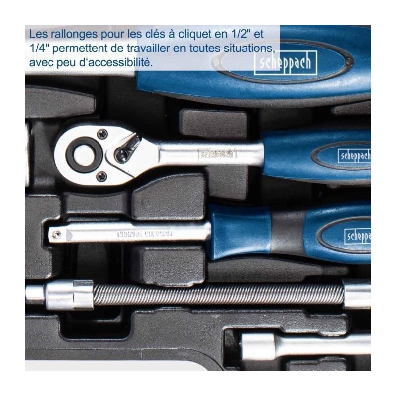 Scheppach Handwerkzeugsatz TB94 im Koffer, 1/4″–1/2″, 94-teilig, Scheppach