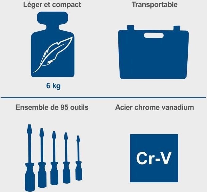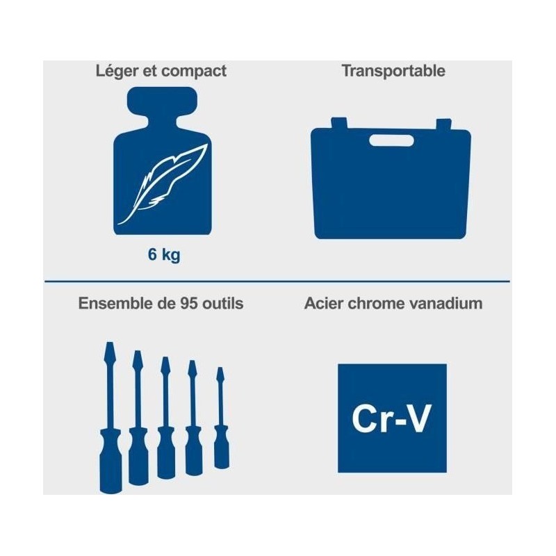 • Die Werkzeuge sind aus hochwertigem Chrom-Vanadium-Stahl gefertigt und daher besonders widerstandsfähig und langlebig