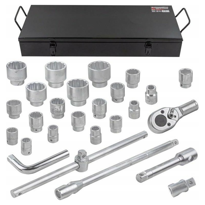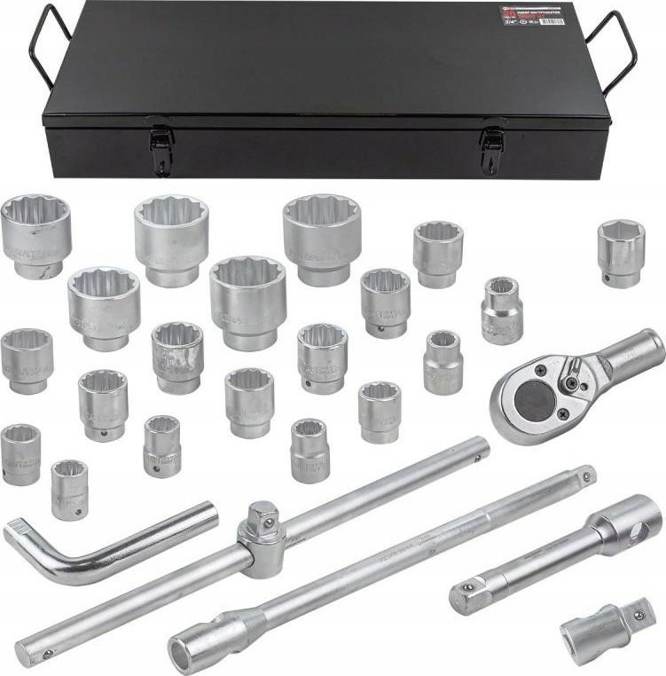 Werkzeugset mit Steckschlüsseln und Ratsche, 26-teilig, 3/4", 12-kant