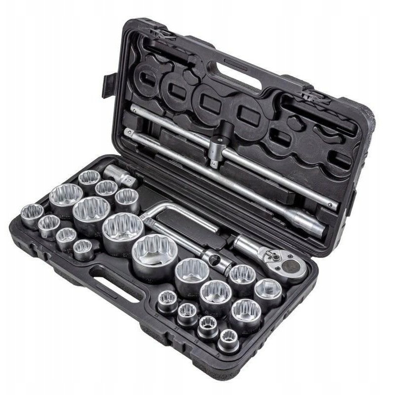 Dieser 26-teilige Werkzeugsatz, bestehend aus Steckschlüsseln in den Größen 3/4" und 1", ist die perfekte Lösung für alle, die sowohl auf Qualität als auch auf Funktionalität Wert legen. Dank der großen Auswahl an Steckschlüsseleinsätzen eignet sich dieser Satz für zahlreiche Anwendungen, sowohl in der heimischen Garage als auch in der professionellen Werkstatt.
