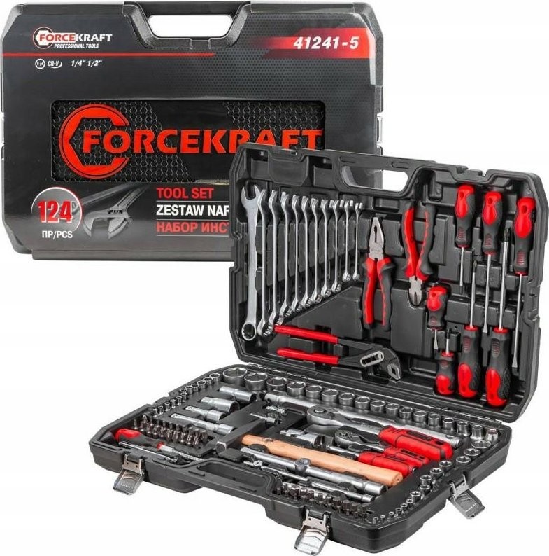 Forcekraft-Werkzeugsatz 1/4"- und 1/2"-Werkzeugsatz, 124-teilig (4–32 mm) (Sechskant)