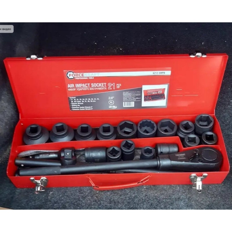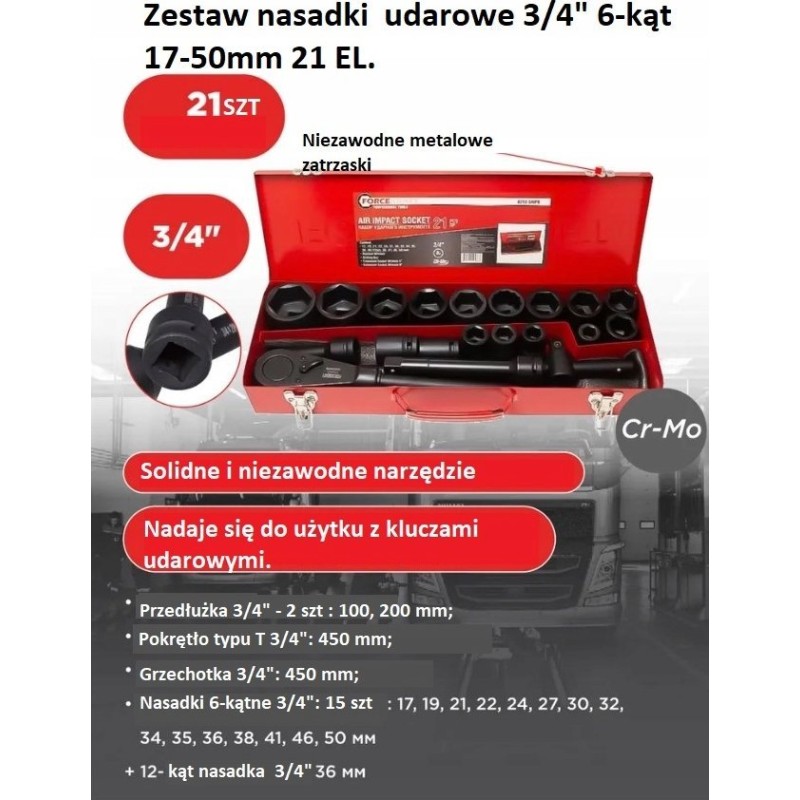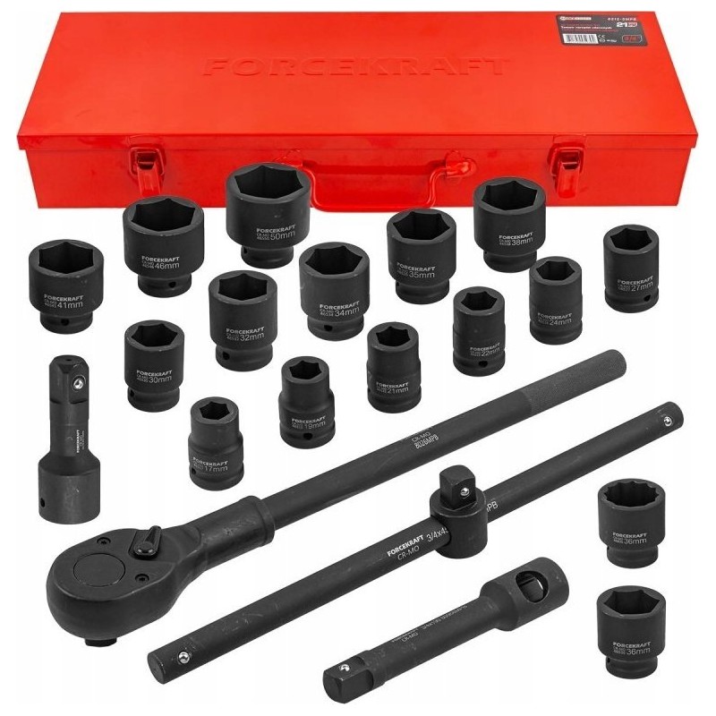 3/4"-Sechskant-Schlagschraubenschlüsselsatz 17–50 mm, 21-teilig, von FORCEKRAFT.