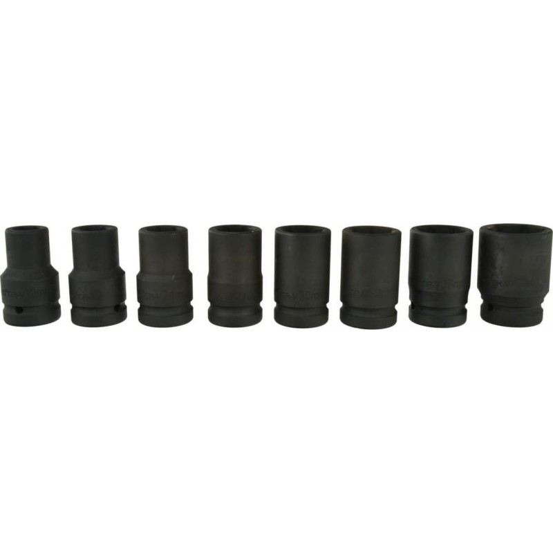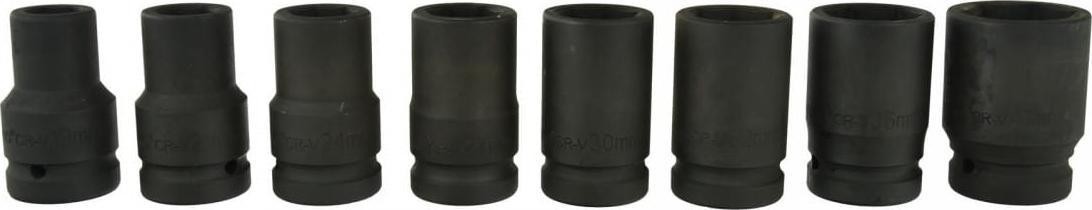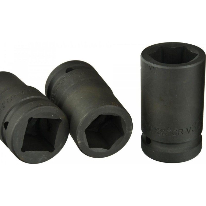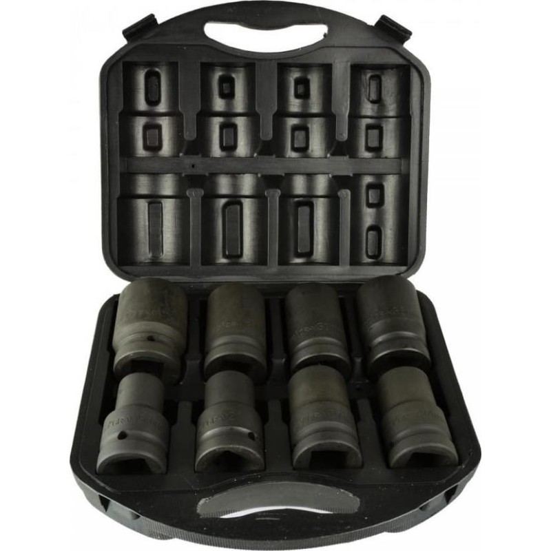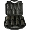 Schlagschraubendreher-Einsätze aus CRV-Stahl, 1 Zoll. Die Aufnahme des Einsatzes ist mit hoher Präzision gefertigt und entspricht den höheren Genauigkeitsklassen der Norm. Die Steckschlüsseleinsätze sind für den Einsatz mit Druckluftwerkzeugen und Ratschen geeignet, die unter schweren Bedingungen und wechselnden Belastungen arbeiten. Das gesamte Set ist in einem Koffer verpackt. IM SET ENTHALTENE STECKSCHLÜSSELEINSÄTZE: 19 mm, 21 mm, 24 mm, 27 mm, 30 mm, 32 mm, 36 mm, 41 mm