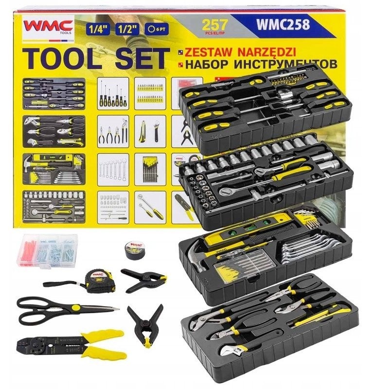 Der 257-teilige Werkzeugsatz ist die perfekte Wahl für alle, die bei Reparaturen und Wartungsarbeiten Wert auf Qualität und Vielseitigkeit legen. Mit 257 Teilen im Set erfüllt er die Erwartungen sowohl von Profis als auch von Hobbyhandwerkern und bietet alles, was für effizientes Arbeiten erforderlich ist.