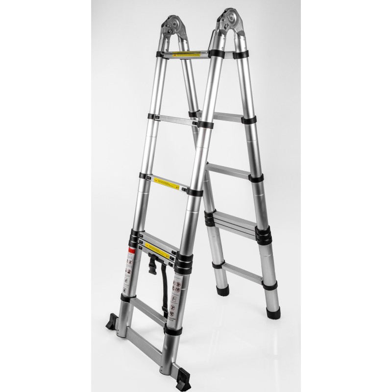 ⚡️ Die Leiter ist aus hochwertigem Aluminium gefertigt, was ihr Stabilität und Leichtigkeit verleiht. Dadurch lässt sie sich bequem transportieren und verstauen sowie schnell auf- und zusammenklappen