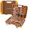 Im Set enthalten sind eine ½-Zoll-Ratsche sowie Verlängerungen mit einer Länge von 125 und 250 mm, was ein bequemes und effizientes Anziehen und Lösen von Schrauben an schwer zugänglichen Stellen ermöglicht. Dank dieser Elemente wird die Arbeit wesentlich einfacher und komfortabler.