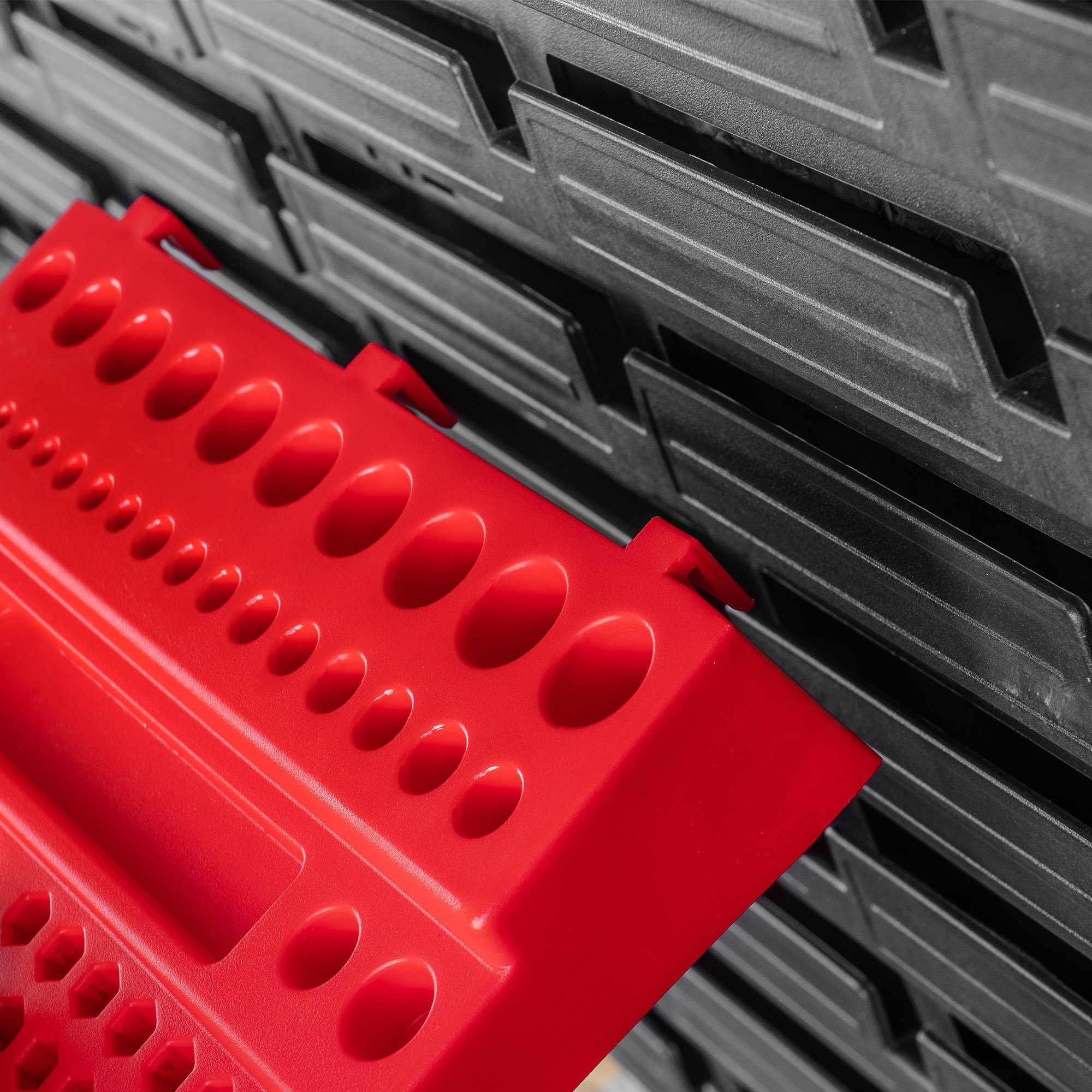 MODULARER AUFBAU – Die große Werkzeugtafel verfügt über einen modularen Aufbau. Sie besteht aus mehreren Elementen, die frei angepasst und um weitere Module erweitert werden können. Die universelle Leiste ermöglicht das Aufhängen von Werkstattbehältern, Regalen sowie Werkzeughaltern.