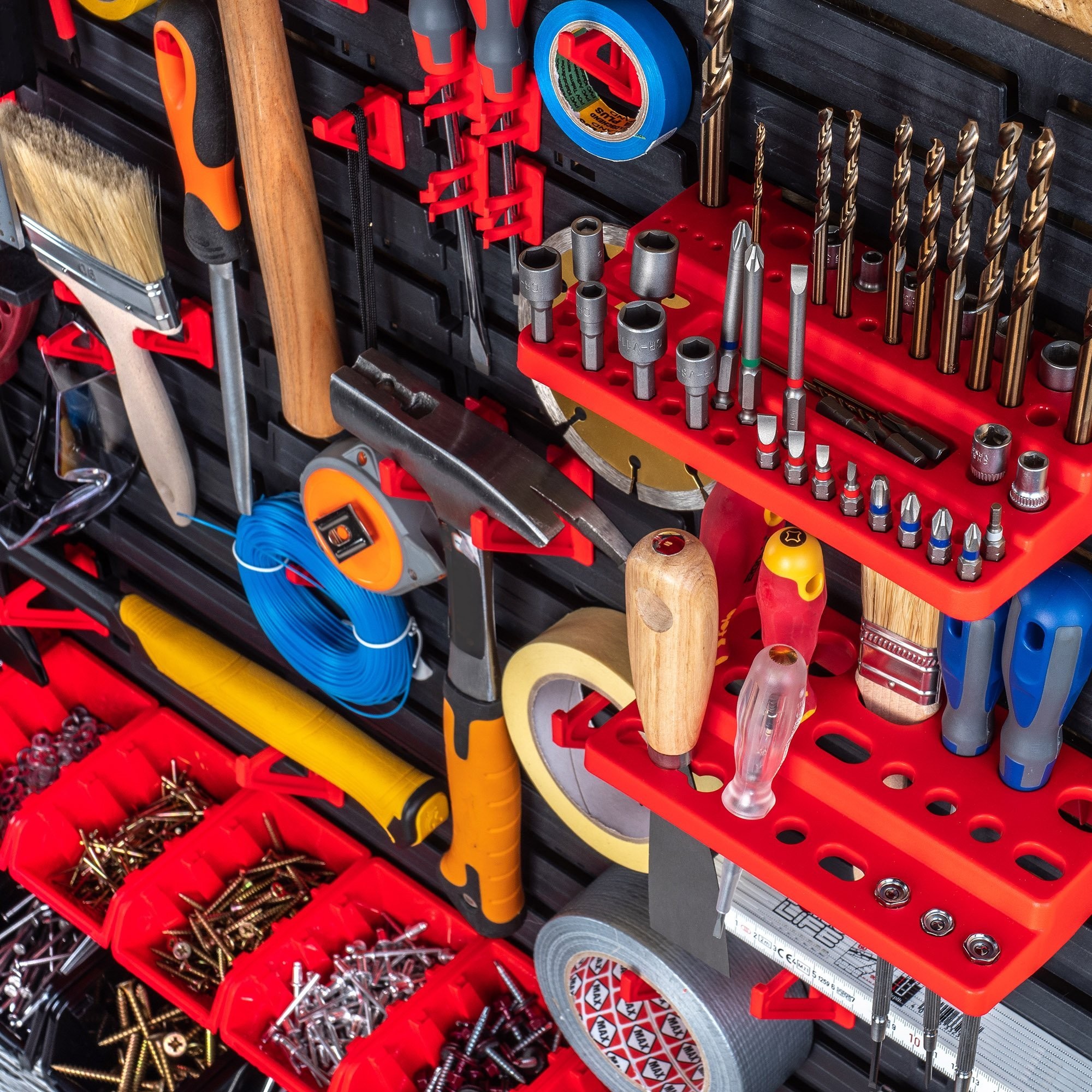 EINFACHE MONTAGE – Die Montage der Werkzeugtafel ist dank der gleichmäßig verteilten Bohrlöcher einfach. Schrauben Sie die Tafel einfach mit Dübeln an die Wand und hängen Sie das Zubehör ein, um sich an einem stabilen Ordnungssystem zu erfreuen.