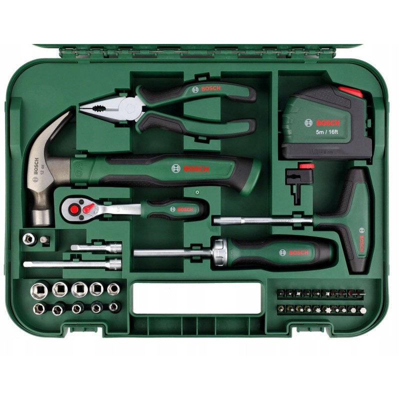 Das Bosch Advanced Handwerkzeugset ist die perfekte Lösung für erfahrene Heimwerker, die vielseitige Werkzeuge für vielfältige Aufgaben suchen. Mit 64 Teilen im Set erfüllt dieses Set die Anforderungen sowohl bei Reparaturen als auch beim Möbelbau und bei Bauarbeiten im Haus.