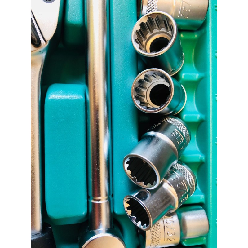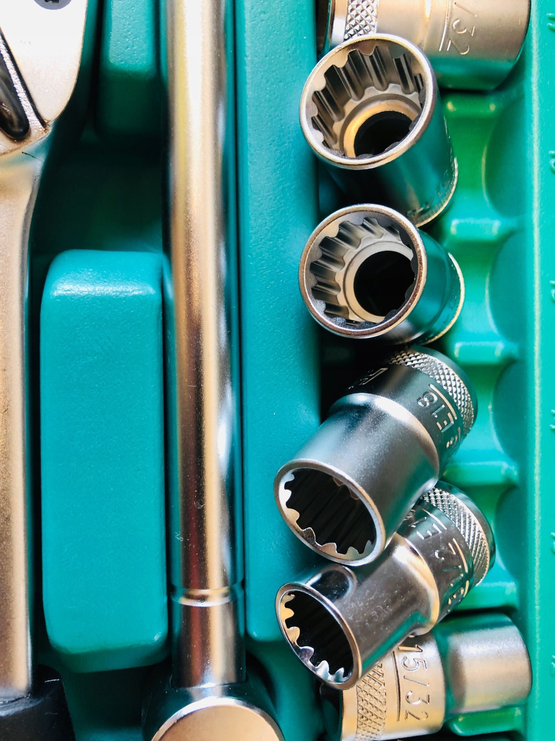 Zwölfkant-Steckschlüsseleinsätze haben, wie der Name schon sagt, eine zwölfkantige Aussparung für die Schraube. Sie werden für unbeschädigte oder nicht korrodierte Verbindungen verwendet. Ein großer Vorteil dieser Steckschlüsseleinsätze ist, dass sie zum Lösen von Sechskantschrauben verwendet werden können.