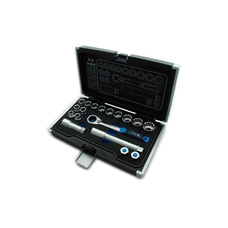 Zwölfkant-Steckschlüsseleinsätze haben, wie der Name schon sagt, eine zwölfkantige Aufnahme für die Schraube. Sie werden für unbeschädigte oder nicht korrodierte Verbindungen verwendet. Ein großer Vorteil dieser Steckschlüsseleinsätze ist, dass sie zum Lösen von Sechskantschrauben verwendet werden können.