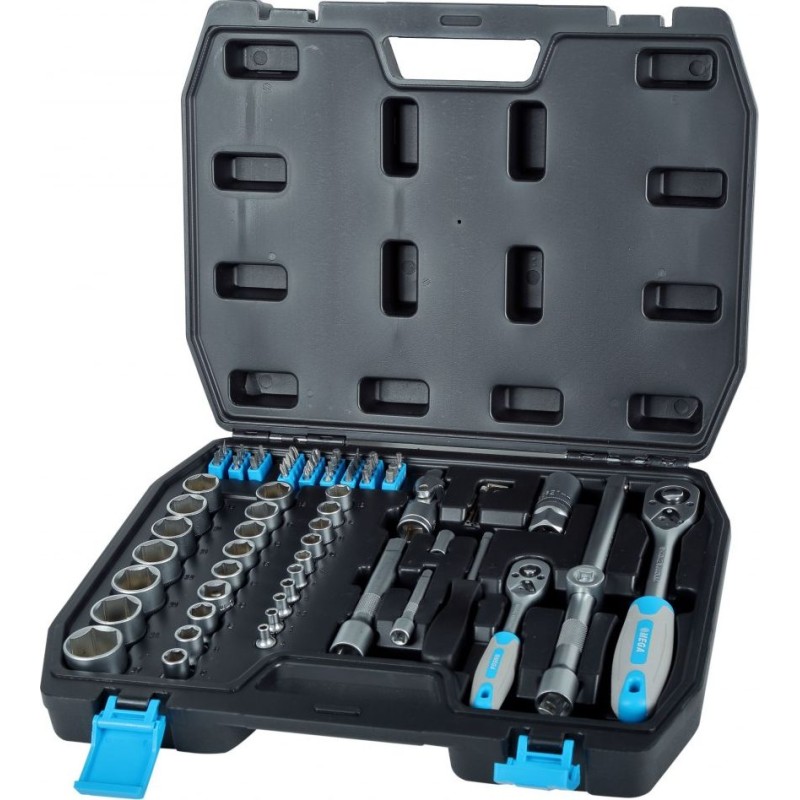 Das Steckschlüsselset der polnischen Marke Mega mit der Artikelnummer 58072 besteht aus 72 Teilen. Die Steckschlüssel eignen sich ideal für den Hausgebrauch, Heimwerkerarbeiten oder in der Werkstatt. Zur Gewährleistung einer hohen Härte wurden Kohlenstoffverbindungen hinzugefügt. Das Set enthält eine große Auswahl an Zubehör, was einen vielseitigen Einsatz bei zahlreichen Arbeiten ermöglicht. Das Produkt enthält Steckschlüssel sowie Steckschlüsseleinsätze für 1/2" und 1/4". Die Ratschen verfügen über einen 72-Zahn-Mechanismus aus Chrom-Molybdän-Stahl und einen rutschfesten Griff. Das gesamte Produkt wird in einem Transportkoffer geliefert, der die Aufbewahrung und den Transport der Werkzeuge erleichtert.