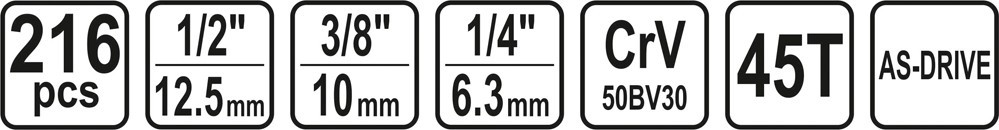 Werkzeugsatz 3/8-1/2" 10-32 mm, 216-teilig (58691)