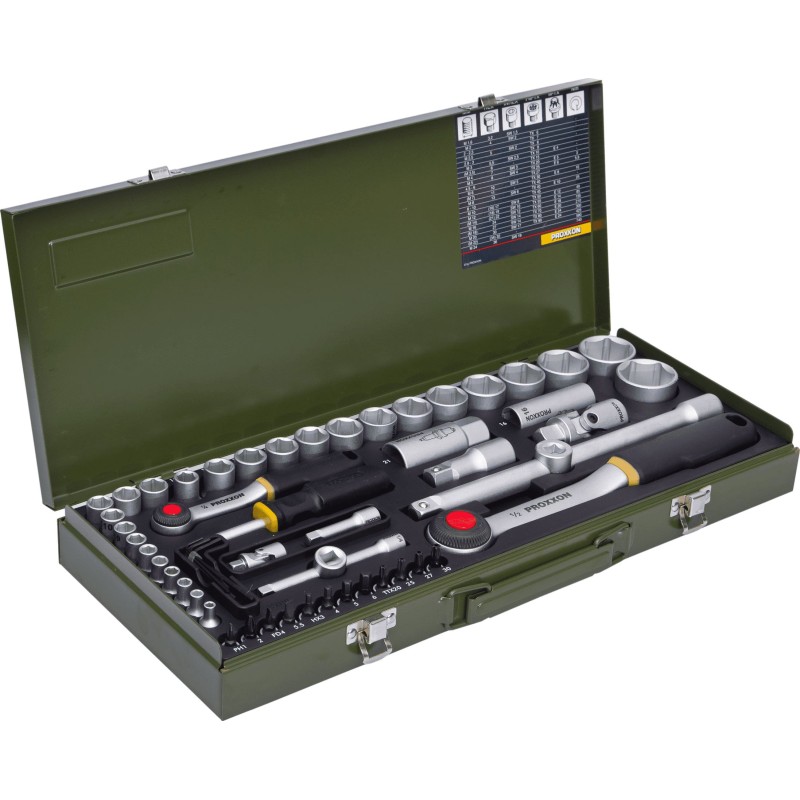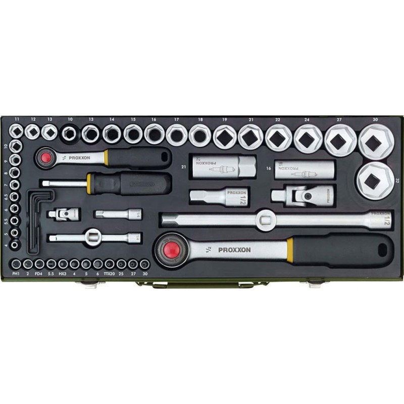 Ein großer Vorteil des vorgestellten Sets ist sein Preis – für einen relativ geringen Betrag erhalten Sie eine hochwertige Ausrüstung, die sich perfekt als Ausstattung für die heimische Garage oder eine professionelle Werkstatt eignet. Kundenbewertungen bestätigen, dass die PROXXON-Ausrüstung die Erwartungen erfüllt und im Vergleich zur Konkurrenz gut abschneidet. Der Hersteller gewährt selbst eine lange Garantie und weiß somit, dass er seinen Kunden hervorragende Werkzeuge zur Verfügung stellt. Entscheiden Sie sich für das PROXXON-Steckschlüsselset mit Zubehör, dank dem Ihre Arbeit noch effizienter und komfortabler wird.