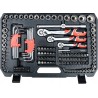 Das Set umfasst verschiedene Steckschlüsseleinsätze, Verlängerungen, Ratschen und Bits in verschiedenen Größen, was die Durchführung zahlreicher Wartungsarbeiten zum Lösen und Anziehen von Schraubverbindungen mit unterschiedlichen Nennweiten ermöglicht. Darüber hinaus enthält das Set Ring- und Sechskantschlüssel, was es zu einem äußerst vielseitigen Werkzeug macht.