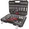 1/4-Zoll-Sechskantsteckschlüsseleinsätze : 4, 4,5, 5, 5,5, 6, 7, 8, 9, 10, 11, 12, 13, 14 mm Sechskant-Steckschlüsseleinsätze 3/8": 10, 11, 12, 13, 14, 15, 16, 17, 18, 19 mm Sechskant-Steckschlüsseleinsätze 1/2": 10, 11, 12, 13, 14, 15, 16, 17, 18, 19, 20, 21, 22, 23, 24, 27, 30, 32 mm verlängerte Sechskant-Steckschlüsseleinsätze 1/4": 4, 5, 6, 7, 8, 9, 10 mm verlängerte Sechskant-Steckschlüsseleinsätze 3/8": 10, 11, 12, 13, 14, 15, 16, 17, 18, 19 mm verlängerte Sechskant-Steckschlüsseleinsätze 1/2": 16, 17, 18, 19, 22 mm 1/4"-Steckschlüsseleinsätze mit Torx-Aufnahme: E4, E5, E6, E7, E8 3/8"-Steckschlüsseleinsätze mit Torx-Aufnahme: E10, E11, E12, E14, E16, E18 1/2"-Steckschlüssel mit Torx-Aufnahme: E20, E40 1/4"-Steckschlüssel mit Bits: Flach 4, 5,5, 6,5, 7; PH 0, 1, 2; PZ 0, 1, 2; HEX 3, 4, 5, 6; Torx T8, T9, T10, T15, T20, T25, T27, T30; Torx Security T8, T9, T10, T15, T20, T25, T27, T30 Ratschengriff 1/4", 3/8" und 1/2" - 72 Zähne, Universalgelenk 1/4", 3/8" und 1/2", Verlängerungen 1/4": 50, 100 mm, Verlängerung 3/8": 125 mm Verlängerungen 1/2": 125, 250 mm Schiebegriff 1/4"", Steckschlüsselhalter 1/4", Adapter 3/8" für Bits 5/16", Adapter 1/2" für Bits 5/16", Adapter 3/8" / 1/2"" für den Griff, 18-mm-Zündkerzensteckschlüssel 3/8"", 16- und 21-mm-Zündkerzensteckschlüssel 1/2", Inbusschlüssel 1,27, 1,5, 2, 2,5, 3, 4, 5 mm, Bits: flach 8, 10, 12; PH 3, 4; PZ 3, 4; HEX 7, 8, 10, 12, 14; Torx T40, T45, T50, T55, T60, T70; Torx Security T40, T45, T50, T55, T60, T70