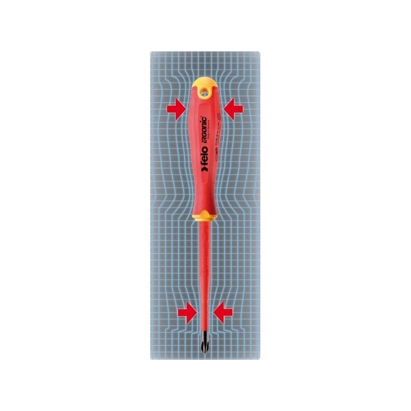 Sehr wichtig ist auch, dass FELO-Schraubendreher höchste Drehmomente übertragen können und somit die hohen Anforderungen aller technischen Normen erfüllen. Die perfekte Passform des Schraubendrehergriffs in der Hand sorgt für weniger Kraftaufwand bei der Arbeit. Am Ende jedes Griffs befindet sich ein deutliches Symbol für die Schraubendreher-Spitze, was die Identifizierung des Werkzeugs erheblich erleichtert. Sie müssen die Schraubendreher nicht mehr nacheinander herausziehen – das spart Ihnen sicherlich Zeit!