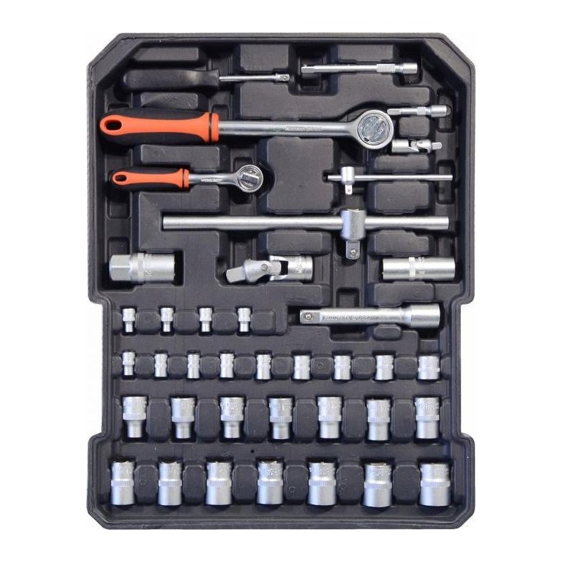 1x Steckschlüssel 1/2 1x Steckschlüssel 1/4 1 x Verlängerungsstange 1/2 1 x T-Stange für 1/4-Bits Schraubendreher 1 1/4" 13x Verlängerung 1/4 (4, 4,5, 5, 5,5, 6, 7, 8, 9, 10, 11, 12, 13, 14 mm) 14x Verlängerung 1/2 (8, 9, 10, 11, 12, 13, 14, 15, 16, 17, 18, 19, 20, 21 mm) 2x Verlängerung 1/2 (16, 21 mm) Gelenkadapter 1x 1/2 Gelenkadapter 1x 1/4 1x Verlängerung 1/2 Verlängerung 120 mm 1x Verlängerung 1/4 mm 50 mm 1x Verlängerung 1/4 mm 100 mm
