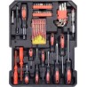 6x Uhrmacherschraubendreher 9x Inbusschlüssel 24-teiliger Bit-Satz (flach, Kreuz, Stern, Vierkant) 1x Bit-Schraubendreher 1x Bit-Halter (Sechskant) 11-teiliger Schraubendreher (Kreuz, flach) 1x Spannungsprüfer 100–250 V 1x magnetischer Teleskopabzieher