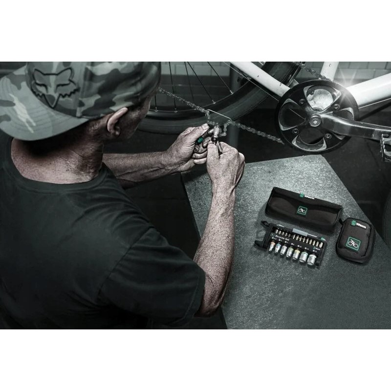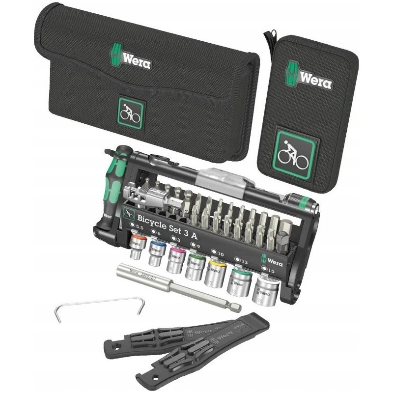 Werkzeugsatz Wera Wera Bicycle Set 3 A, 40-teilig (schwarz/grün, inklusive umkehrbarer Ratsche mit 1/4-Zoll-Aufnahme)