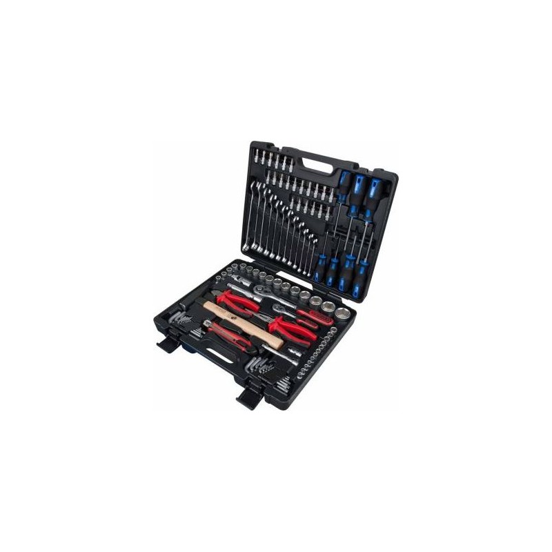 Dieses umfassende 97-teilige Werkzeugset der Marke KS Tools enthält verschiedene Handwerkzeuge, 1/4"- und 1/2"-Steckschlüsseleinsätze sowie Bits aus bestem Chrom-Vanadium-Stahl. Das 6-Kant-Profil der FlankTraction-Steckschlüsseleinsätze macht sie besonders geeignet zum Lösen oder Festziehen festsitzender Schrauben.