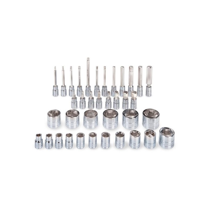 Das Set enthält Steckschlüsseleinsätze in den Größen 8 bis 19 mm sowie 1" und Inbusschlüssel in gängigen Größen, was es äußerst vielseitig macht. Darüber hinaus sorgen Inbusschlüssel mit langem Schaft und Torx-Einsätze in verschiedenen Größen für noch mehr Flexibilität bei der Arbeit.