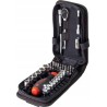 Mit diesem Set, bestehend aus den gängigsten 1/4"-Sechskant-Steckschlüsseleinsätzen in den Größen 4–14 mm, verschiedenen Bits, einem Bithalter, einem Ratschenschlüssel, zwei Verlängerungen, einem Kardangelenk sowie einem Adapter für den 1/4"-Steckschlüssel, ist der Anwender optimal für Installations- und Montagearbeiten gerüstet.