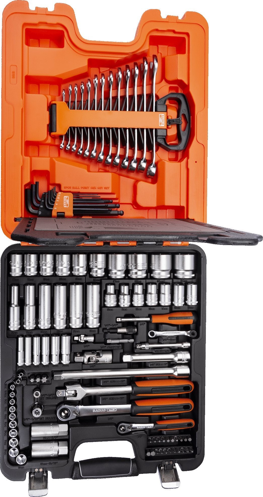 103-teiliges Set: 1/4"- und 1/2"-Steckschlüsseleinsätze sowie Ring-Maulschlüssel – Bahco S103