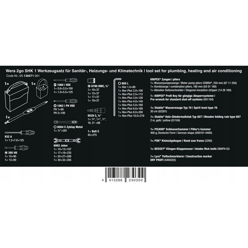 Kategorie Werkzeugsätze Marke Wera EAN13 4013288230300