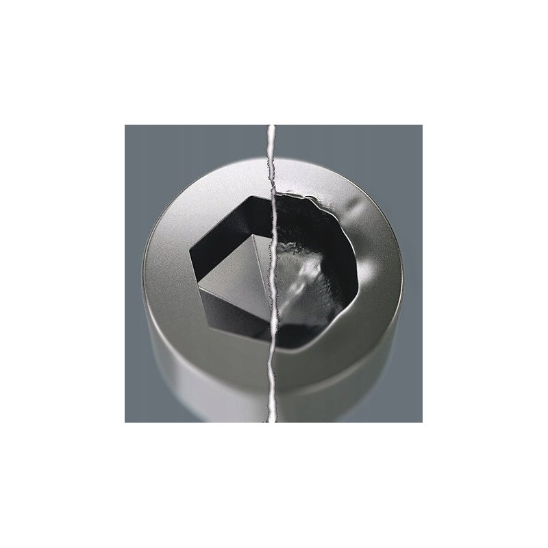 Bei Sechskantschrauben kommt es in der Regel sehr schnell zu einer Abrundung des Sechskantkopfes. Dies wird durch die Einwirkung der scharfen Kante des Werkzeugs auf die Innenfläche des Schraubenkopfes verursacht. Der schrittweise Verschleißprozess führt schließlich zur Abrundung des Sechskantkopfes. Die größeren Kontaktflächen der Wera Hex-Plus-Werkzeuge verhindern diesen Prozess. Der Kerbeneffekt und damit die Verformung werden deutlich reduziert. Gleichzeitig können um 20 % höhere Drehmomente übertragen werden. Zudem können Hex-Plus-Werkzeuge für alle gängigen Sechskantschrauben verwendet werden!