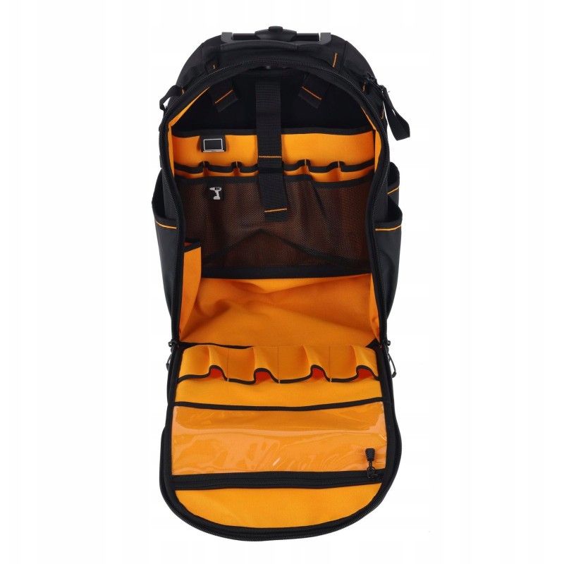 Der Rucksack verfügt über ein separates Fach für einen Laptop, was zusätzliche Sicherheit für die Elektronik bietet. Der wasserdichte Boden schützt den Inhalt des Rucksacks vor Feuchtigkeit, und der ergonomische U-förmige Reißverschluss ermöglicht ein schnelles und bequemes Verstauen sowie Entnehmen von Werkzeugen.