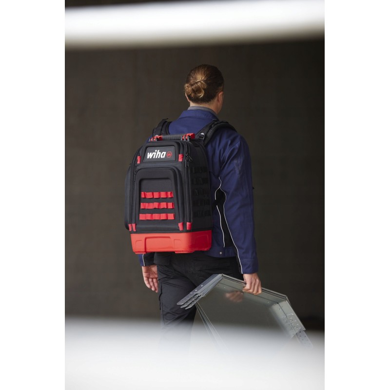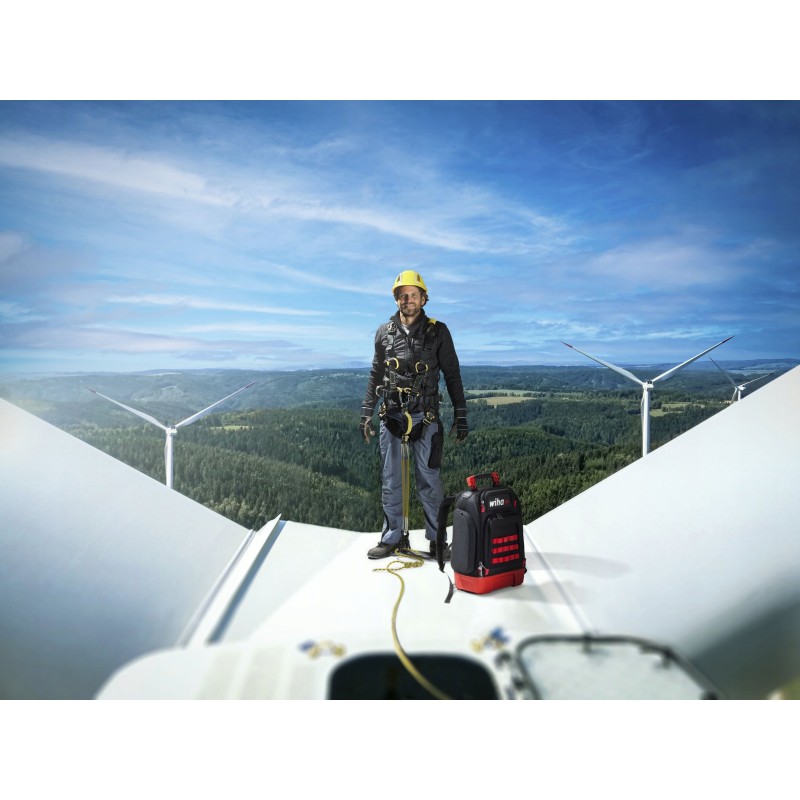 • Wer viel zu tun hat, braucht beide Hände frei. Der WIHA-Rucksack für Installateure ist die ideale Wahl und sorgt dank seines innovativen Designs für volle Bewegungsfreiheit.