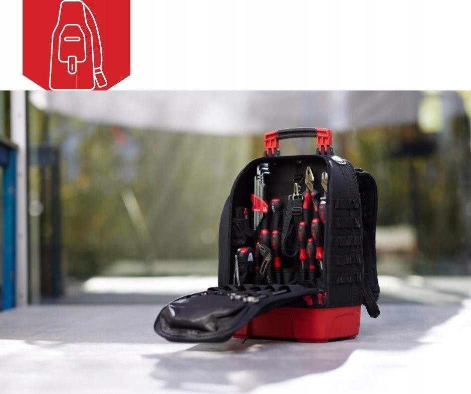 • Das durchdachte Fächersystem ermöglicht eine übersichtliche Aufbewahrung und das einfache Entnehmen der Werkzeuge. Es reicht, nur 1/3 des Rucksackdeckels zu öffnen, um schnell an die benötigten Werkzeuge zu gelangen.