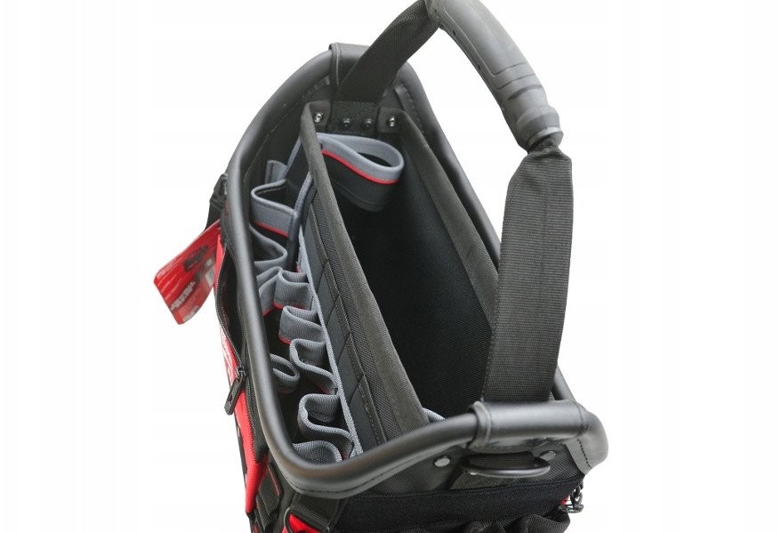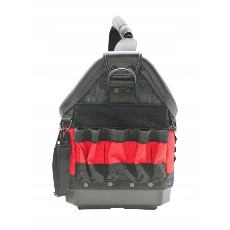 Die Tasche wurde mit Blick auf den Komfort des Benutzers entwickelt. Der ergonomische Griff und der Schultergurt erleichtern den Transport, was besonders bei längerem Tragen der Werkzeuge wichtig ist.